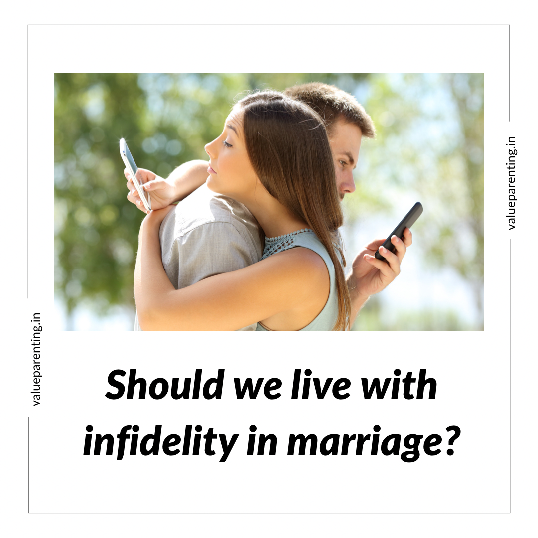 So to conclude: infidelity in marriage is absolutely a no-no and should not be entertained or tolerated by anyone with any self-esteem. If you are a parent, then teach your children with your own example how to stand for your values. The best course I believe is simply to forgive and move on- separately.