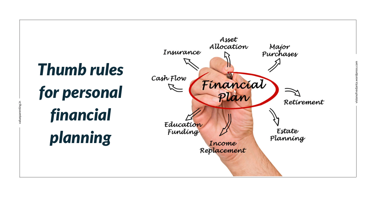 Sometimes Rules of thumb will give you a false sense of security or wrong guidance – so take them with a pinch of salt. But at any given point, it is better to at least have financial planning based on a thumb rule than to have no financial planning. Also, you may not be in a position to implement them exactly but you can try to be close to it or gradually aim to get close to it over months or years.